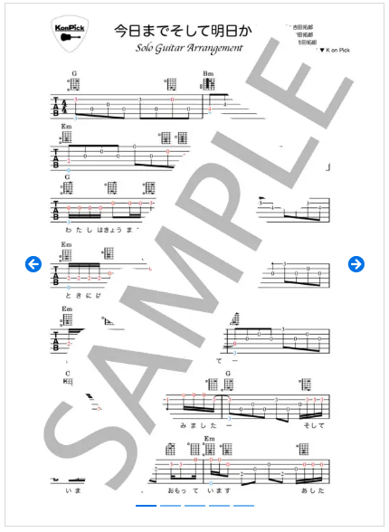 今日までそして明日から【ソロギターTAB譜】[A4縦]一覧に便利 [A4横]詳細確認に便利(全11P)